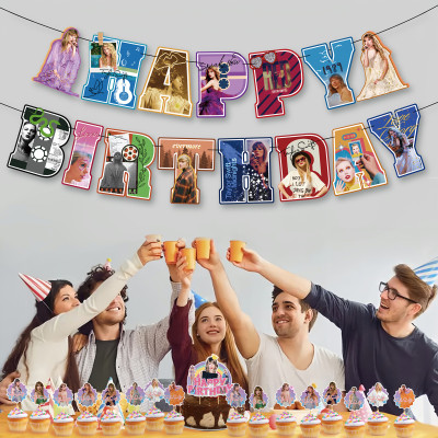 تايلور موضوع عيد ميلاد سعيد سحب العلم ، إدراج كعكة عيد ميلاد سعيد ، حفلة عيد ميلاد المشاهير الديكور البالون
